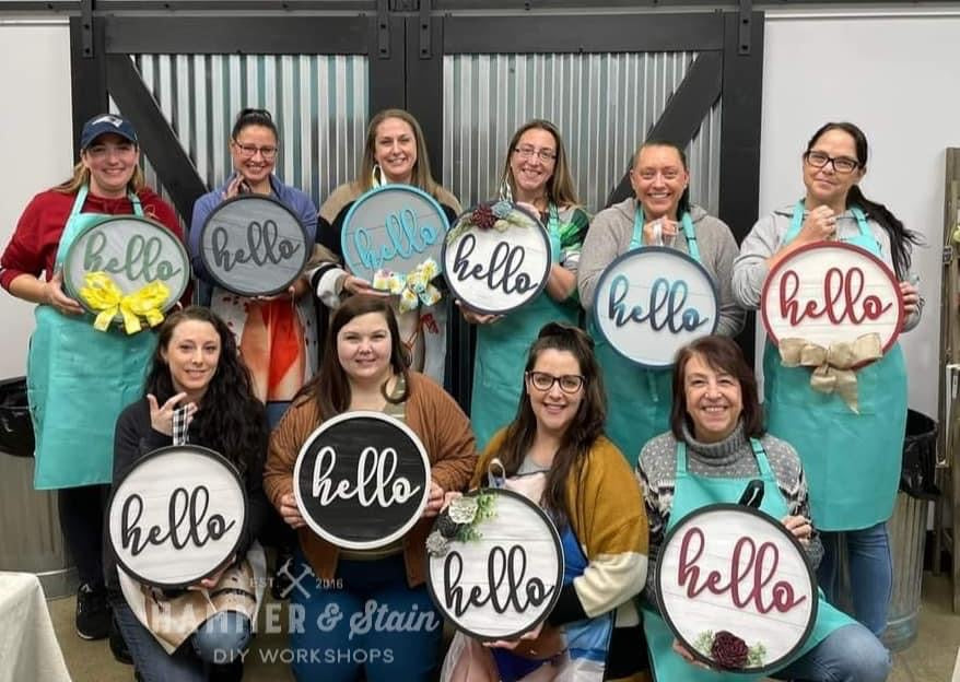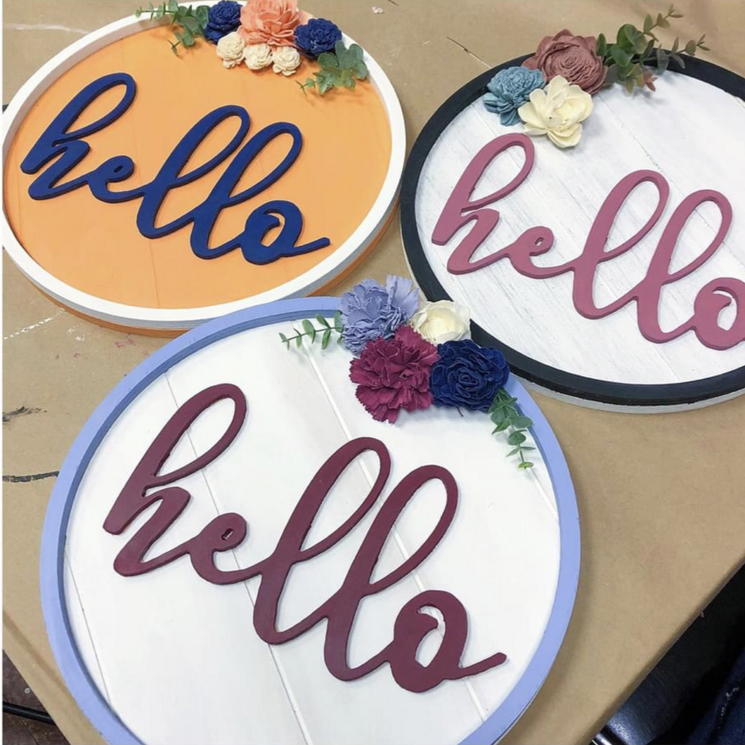 Join us Sunday, January 25, at 12pm at Hammer & Stain West Michigan for a DIY Workshop to make a fun project with Wood Flowers! You can choose from a Hello Doorhanger (14") or Floral Heart Pallet (18").